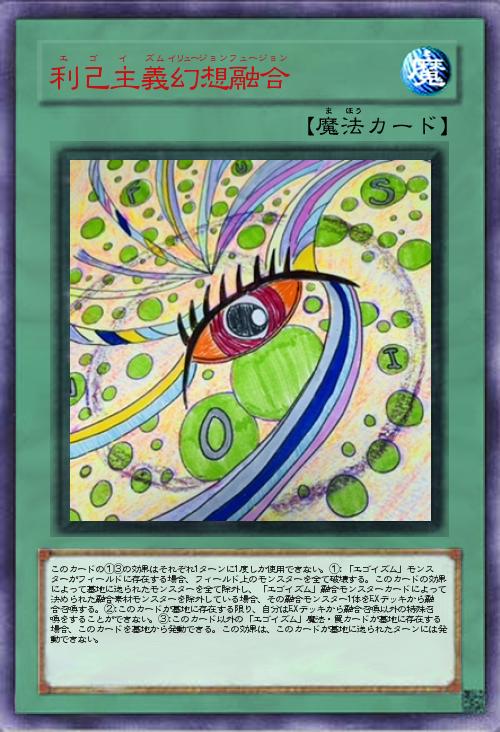 その後、この効果で墓地へ送られたモンスターを全て除外し、「エゴイズム」融合モンスターカードによって決められた融合素材モンスターを除外した場合、その融合モンスター1体をEXデッキから融合召喚する。
