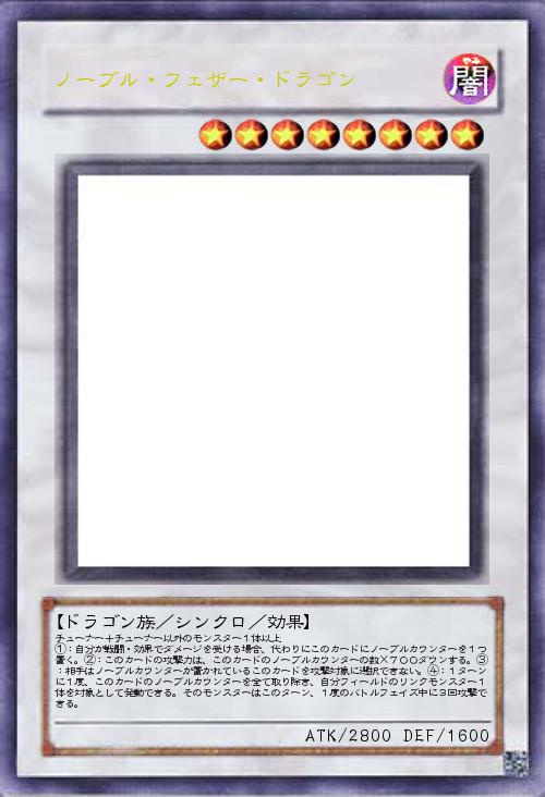 | チューナー+チューナー以外のモンスター1体以上 ①:自分が戦闘・効果でダメージを受ける場合、代わりにこのカードにノーブルカウンターを1つ置く。②:このカードの攻撃力は、このカードのノーブルカウンターの数×700ダウンする。③:相手はノーブルカウンターが置かれているこのカードを攻撃対象に選択できない。④:1ターンに1度、このカードのノーブルカウンターを全て取り除き、自分フィールドのリンクモンスター1体を対象として発動できる。そのモンスターはこのターン、1度のバトルフェイズ中に3回攻撃できる。 | |||