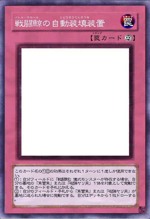 | このカード名の①②の効果はそれぞれ1ターンに1度しか使用できない。 ①:自分フィールドに「戦闘鯨」儀式モンスターが存在する場合、自分の墓地の「魚雷魚」または「砲弾ヤリ貝」1体を対象として発動できる。そのカードを手札に加える。 ②:自分のフィールド・手札から「魚雷魚」または「砲弾ヤリ貝」が墓地に送られた場合に発動できる。自分はデッキから1枚ドローする。 | |||