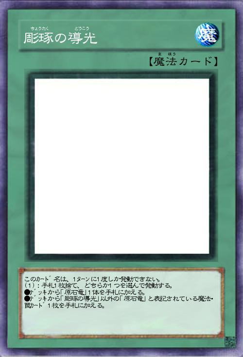 | このカード名は、1ターンに1度しか発動できない。 (1):手札1枚捨て、どちらか1つを選んで発動する。 ●デッキから「原石竜」1体を手札に加える。 ●デッキから「彫琢の導光」以外の「原石竜」と表記されている魔法・罠カード1枚を手札に加える。 | |||