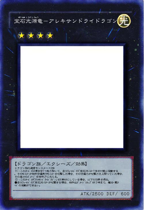 | ドラゴン族の通常モンスター×2体 (1):このカードのX素材を1つ取り除いて、自分フィールドの「宝石」モンスター1体を対象に発動する。そのモンスターが相手守備表示モンスターを攻撃した場合、その守備力が攻撃力を上間っていた場合、その差分のダメージを相手LPに与える。 (2):このカードが「アレキサンドライドラゴン」をX素材にしている場合、以下の効果を得る。 ●自分フィールドの「宝石」モンスターが攻撃する場合、相手はダメージステップ終了時まで、魔法・罠カードの発動ができない。 | |||