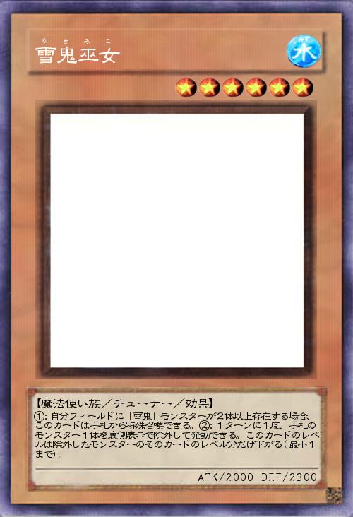 | ①:自分フィールドに「雪鬼」モンスターが2体以上存在する場合、このカードは手札から特殊召喚できる。②:1ターンに1度、手札のモンスター1体を裏側表示で除外して発動できる。このカードのレベルは除外したモンスターのそのカードのレベル分だけ下がる(最小1まで)。 | |||