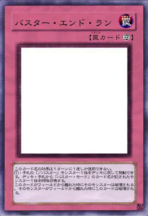 | このカード名の効果は1ターンに1度しか使用できない。 ①:手札の「/バスター」モンスター1体をデッキに戻して発動できる。デッキ・手札から「バスター・モード」のカード名が記されたモンスター1体を特殊召喚する。 このカードがフィールドから離れた時にそのモンスターは破壊される。そのモンスターがフィールドから離れた時にこのカードは破壊される。 | |||
