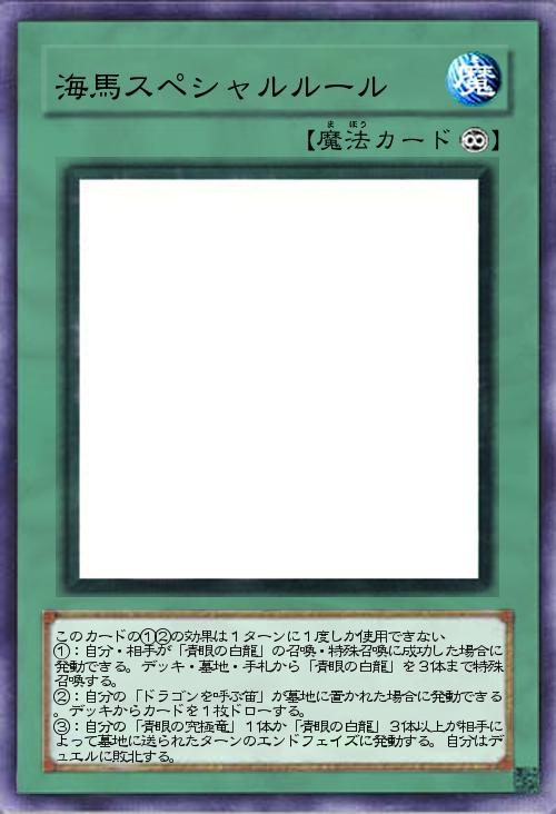 | このカードの①②の効果は1ターンに1度しか使用できない ①:自分・相手が「青眼の白龍」の召喚・特殊召喚に成功した場合に発動できる。デッキ・墓地・手札から「青眼の白龍」を3体まで特殊召喚する。 ②:自分の「ドラゴンを呼ぶ笛」が墓地に置かれた場合に発動できる。デッキからカードを1枚ドローする。 ③:自分の「青眼の究極竜」1体か「青眼の白龍」3体以上が相手によって墓地に送られたターンのエンドフェイズに発動する。自分はデュエルに敗北する。 | |||