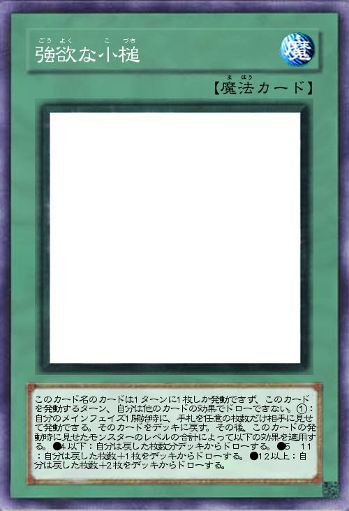 | このカード名のカードは1ターンに1枚しか発動できず、このカードを発動するターン、自分は他のカードの効果でドローできない。①:自分のメインフェイズ1開始時に、手札を任意の枚数だけ相手に見せて発動できる。そのカードをデッキに戻す。その後、このカードの発動時に見せたモンスターのレベルの合計によって以下の効果を適用する。●4以下:自分は戻した枚数分デッキからドローする。●5〜11:自分は戻した枚数+1枚をデッキからドローする。●12以上:自分は戻した枚数+2枚をデッキからドローする。 | |||