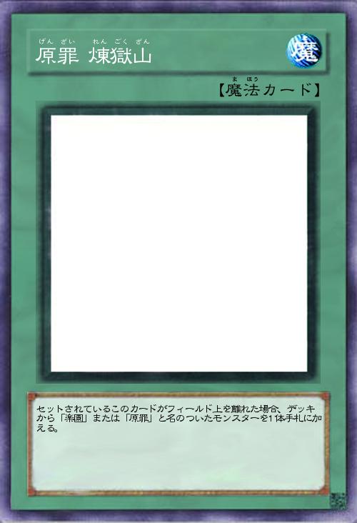 | セットされているこのカードがフィールド上を離れた場合、デッキから「楽園」または「原罪」と名のついたモンスターを1体手札に加える。 | |||