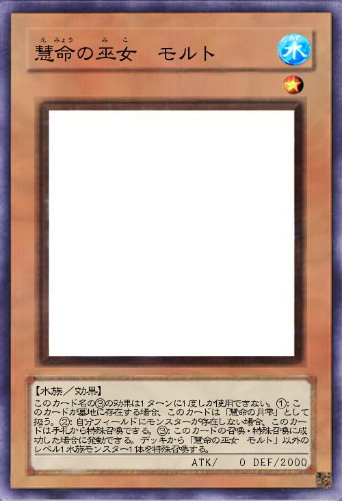 | このカード名の③の効果は1ターンに1度しか使用できない。①:このカードが墓地に存在する場合、このカードは「慧命の月雫」として扱う。②:自分フィールドにモンスターが存在しない場合、このカードは手札から特殊召喚できる。③:このカードの召喚・特殊召喚に成功した場合に発動できる。デッキから「慧命の巫女 モルト」以外のレベル1水族モンスター1体を特殊召喚する。 | |||