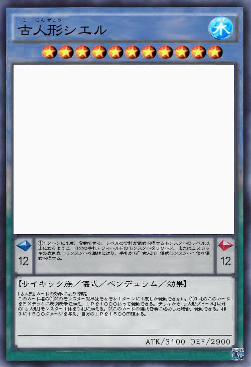| ①1ターンに1度、発動できる。レベルの合計が儀式召喚するモンスターのレベル以上になるように、自分の手札・フィールドのモンスターをリリース、またはEXデッキの表側表示モンスターを墓地に送り、手札から「古人形」儀式モンスター1体を儀式召喚する。 | |||
