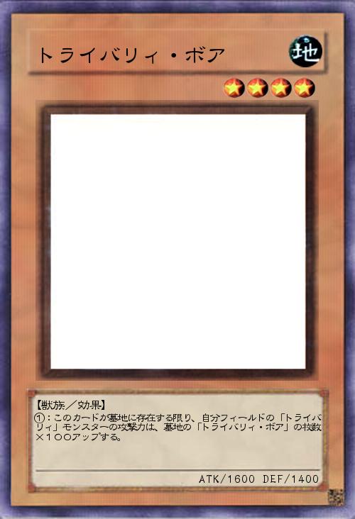 | ①:このカードが墓地に存在する限り、自分フィールドの「トライバリィ」モンスターの攻撃力は、墓地の「トライバリィ・ボア」の枚数×100アップする。 | |||