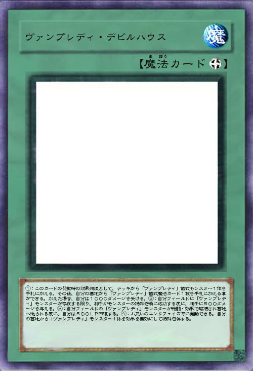 「発動時に「ヴァンプレディ」儀式モンスターサーチと「ヴァンプレディ」儀式魔法サルベージ(こっちもしたら1000ダメージ受ける) 自分フィールドに「ヴァンプレディ」がいて相手が特殊召喚する度に500バーン 「ヴァンプレディ」が破壊される度に500回復 お互いのエンドフェイズに墓地の「ヴァンプレディ」を効果無効で特殊召喚(こっちは破壊されたとかの制限はない)」(2021-10-09 12:44)