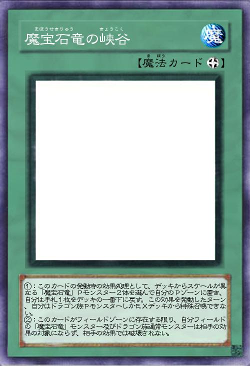 | ①:このカードの発動時の効果処理として、デッキからスケールが異なる「魔宝石竜」Pモンスター2体を選んで自分のPゾーンに置き、自分は手札1枚をデッキの一番下に戻す。この効果を発動したターン、自分はドラゴン族PモンスターしかEXデッキから特殊召喚できない。 ②:このカードがフィールドゾーンに存在する限り、自分フィールドの「魔宝石竜」モンスター及びドラゴン族通常モンスターは相手の効果の対象にならず、相手の効果では破壊されない。 | |||