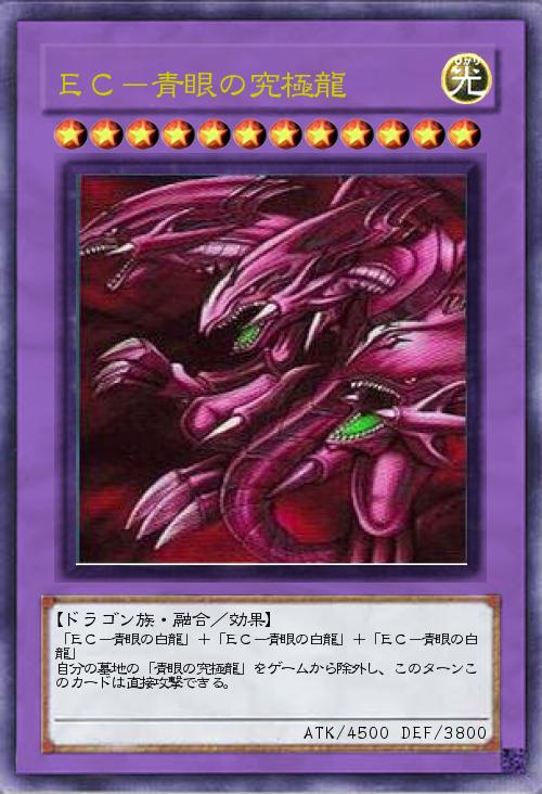 「EC-のカード2枚目。融合がいくつかあります。それとコメントよろです。青眼の究極龍の色違いですね。」(2012-07-05 20:06)