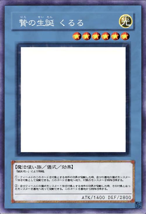 | 「誕生呪い」により降臨。 ①:フィールドのこのカードを対象とする相手の効果が発動した時、自分の墓地の儀式モンスター1体を対象として発動できる。このカードを墓地へ送り、対象のモンスターを特殊召喚する。 ②:自分フィールドの儀式モンスター1体を対象とする相手の効果が発動した時、その対象となったモンスターを墓地へ送って発動できる。このカードを墓地から特殊召喚する。 | |||