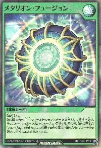 【条件】500LPを払って発動できる。 【効果】自分のデッキの上からカード2枚を墓地へ送る。その後、自分の墓地の通常モンスター(レベル5以下)、「フュージョン」、「融合」の中から1枚を選んで手札に加える事ができる。 |