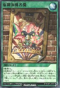 「イマジナリー・アクター」+モンスター(レベル9/サイボーグ族) 【条件】手札1枚をデッキの下に戻して発動できる。 【選択効果】 ●自分の墓地のモンスター(レベル9/サイボーグ族)1体を選び、自分フィールドに表側守備表示で特殊召喚する。 ●相手フィールドの表側表示モンスター(サイボーグ族以外)1体を選び、このカードの攻撃力はターン終了時まで、[選んだモンスターの攻撃力]だけアップする。 |
