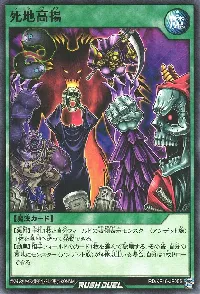 【条件】手札1枚と自分フィールドの表側表示モンスター(アンデット族)1体を墓地へ送って発動できる。 【効果】相手フィールドのカード1枚を選んで破壊する。その後、自分の墓地にモンスター(アンデット族)が4体以上いる場合、自分は1枚ドローできる。 |
