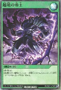 | このカードは表側表示モンスター(レベル5以上/守備力1000)1体をリリースして攻撃表示でアドバンス召喚できる。【条件】このカードを攻撃表示でアドバンス召喚したターンに発動できる。【効果】相手は自身のフィールドのカード1枚を選ぶ。自分はそのカードを破壊する。 | ||||||
