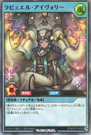 | 【条件】モンスター2体以上を素材としてこのカードをリチュアル召喚した自分メインフェイズに発動できる。 【効果】自分は2枚ドローする。 |