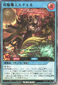 | 【条件】なし【永続効果】自分フィールドにこのカード以外の表側表示モンスター(レベル10/炎属性)がいる場合、相手フィールドの表側表示モンスターの攻撃力・守備力は1000ダウンする。自分の墓地のマキシマムモンスターが3体以上の場合、自分のモンスター(レベル10/炎属性)の攻撃宣言時に相手は罠カードを発動できない。 | ||||||