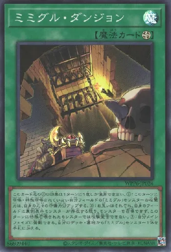 | このカード名の(3)の効果は1ターンに1度しか使用できない。 (1):このターンに召喚・特殊召喚されていない自分フィールドの「ミミグル」モンスターの攻撃力は、自身の元々の守備力分アップする。 (2):お互いはそれぞれ、自身のフィールドに裏側表示モンスターが存在する限り、モンスターを召喚できず、このターンに特殊召喚されたモンスターでは攻撃宣言できない。 (3):自分メインフェイズに発動できる。自分のデッキ・墓地から「ミミグル」モンスター1体を手札に加える。 |